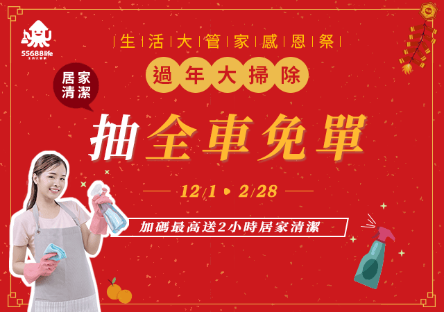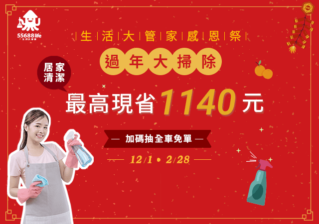 台灣智慧生活網股份有限公司生活大管家(下稱本公司)係依據本服務條款提供生活大管家(https://www.55688life.com.tw/,以下簡稱本網站)「居家清潔服務」(以下統稱本服務)。當您使用本服務時,即表示您已閱讀、瞭解並同意接受本服務條款之所有內容。此外,當您使用本公司的特定服務時,可能會依據該特定服務之性質,而須遵守本公司所另行公告之服務條款或相關規定。此另行公告之服務條款或相關規定,亦均併入屬於本服務條款之一部分。本公司有權於任何時間修改或變更本服務條款之內容,建議您隨時注意該等修改或變更。您於任何修改或變更後繼續使用本服務,視為您已閱讀、瞭解並同意接受該等修改或變更。如果您不同意本服務條款的內容,或者您所屬的國家或地域排除本服務條款內容之全部或一部時,您應立即停止使用本服務。